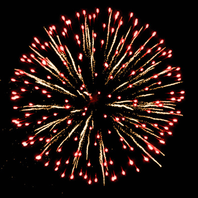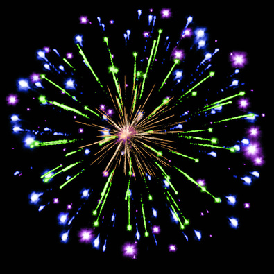 Разноцветные кометы разрываются сферами из цветных мерцающих огней, серебряных искристых форсов и трещащих искр.
