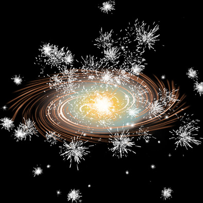 Поток серебряных огней и золотые искры. Раскручивается, разбрасывая золотые, серебряные искры и светясь разноцветным огнём.
