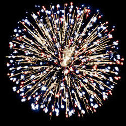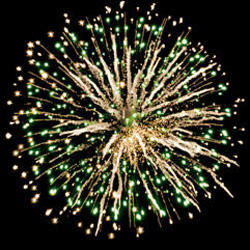 Разноцветные кометы разрываются сферами из серебряных форсов, цветных мерцающих и трещащих огней.