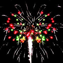 Парчовая пальма с белым мерцанием. Золотая пальма с красными и зелеными звездками в сопровождении ослепительного мерцания. Красные кометы с пышными шлейфами сопровождаются оглушительным треском и мерцанием. Парчовая пальма сопровождается множеством трещащих сфер. Красные и зеленые кометы раскрываются золотыми волнами. Красная пальма с синими жемчужинами и трещащими искрами. Финал золотые пальмы раскрываются множеством лиловых жемчужин и переходят в оглушительный треск и ослепительное мерцание.