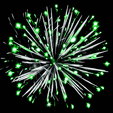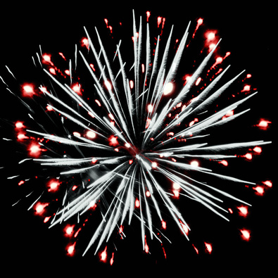 Золотые трассы с золотыми мерцающими огнями на концах разрываются сферами из серебряных парчовых форсов с цветными трещащими огнями.