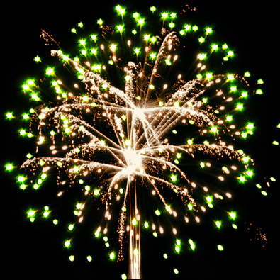 Веер. Серебряные трассы разрываются сферой из золотых форсов, красных и серебряных мерцающих огней, букетами из серебряных мерцающих огней. Веер. Серебряные кометы разрываются букетами из золотых искристых форсов и сферой из серебряных форсов, фиолетовых, желтых и зеленых мерцающих огней. Веер. Искристые серебряные трещащие трассы. Сфера из золотых форсов, зеленых и золотых мерцающих огней.