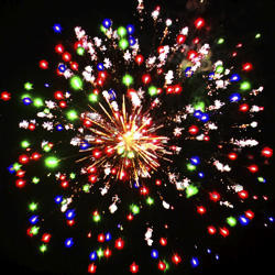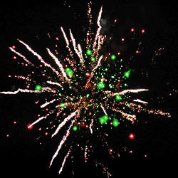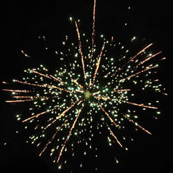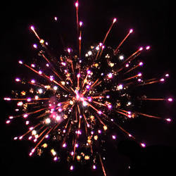 Золотая пальма в сопровождении множества мерцающих зеленых жемчужин. Золотая пальма с лиловыми огоньками в сопровождении множества золотых трещащих искр. Красные, зеленые и фиолетовые кометы переходят в тысячи трещащих золотых сфер. Золотая пальма с красными и зелеными огоньками в сопровождении белых мерцающих звезд. Пышные трещащие хвосты в сопровождении зеленого мерцания. Эффектный финал: парчовая корона и золотая пальма в сопровождении тысячи изумрудных жемчужин, красных огоньков и ослепительного мерцания.