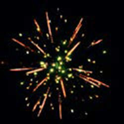 Разноцветные кометы разрываются сферами из: Свистящие элементы. серебряных форсов и трещащих огней; серебряных форсов и зеленых мерцающих огней.