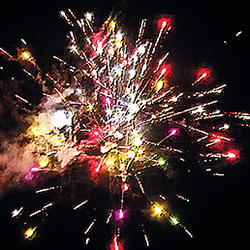 4 батареи в одной коробке. Батареи можно располагать в любой последовательности, соединив их по стрелкам с помощью посадочных мест на блоках. 1-й блок "Мерцающие огни". Разноцветные кометы разрываются сферами из: золотых форсов, красных и белых мерцающих огней; желтых, фиолетовых и зеленых мерцающих огней; красных, фиолетовых, желтых и белых мерцающих огней. 2-й блок "Цвет и треск". Разноцветные кометы разрываются сферами из: красных, синих и трещащих огней; зеленых, желтых и трещащих огней; фиолетовых, лимонных и желтых огней. 3-й блок "Пальмовые разрывы". Разноцветные кометы разрываются сферами из: красных, синих и трещащих огней; зеленых, желтых и трещащих огней; фиолетовых, лимонных и желтых огней. 4-й блок "Пионы и хризантемы". Разноцветные кометы разрываются сферами из: желтых, фиолетовых и зеленых мерцающих огней; золотых форсов и зеленых мерцающих огней; золотых форсов и множества трещащих сфер.
