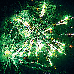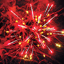 4 батареи в одной коробке. Батареи можно располагать в любой последовательности, соединив их по стрелкам с помощью посадочных мест на блоках. 1-й блок "Пальмы, треск и мерцание". Разноцветные кометы разрываются сферами из: серебряных форсов с красными огнями на концах, желтых и трещащих огней; серебряных форсов с зелеными огнями на концах и золотых мерцающих огней; серебряных форсов с синими огнями на концах и красных мерцающих огней. 2-й блок "Ивы и мерцание". Серебряные и золотые искристые трассы разрываются сферами из: золотых искристых форсов с красными и синими огнями на концах; золотых форсов с красными мерцающими и золотыми мерцающими искрами; синих огней и золотых форсов с золотыми искрами. 3-й блок "Короны и мерцание". Разноцветные кометы разрываются сферами из: золотых форсов с красными мерцающими и зелеными мерцающими искрами; золотых форсов, фиолетовых и зеленых мерцающих огней; золотых форсов и множества трещащих сфер. 4-й блок "Цвет, треск и турбиллионы". Разноцветные кометы, спиралеобразные искристые трассы разрываются сферами из: красных огней и золотых форсов с трещащими искрами; множества трещащих сфер и золотых форсов с трещащими искрами; красных, синих и зеленых огней.