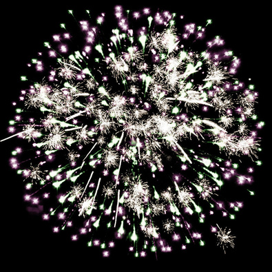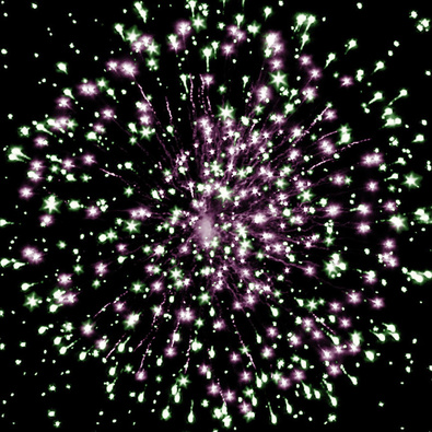 Разноцветные кометы разрываются сферами из цветных мерцающих огней и серебряных трещащих искр.
