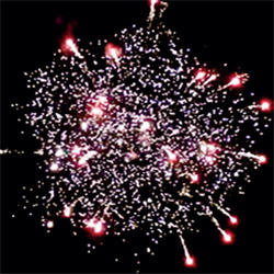 Интересное сочетание насыщенного красного и синего цветов с сильными разрывами и добавлением специальных эффектов делает этот салют особенным!