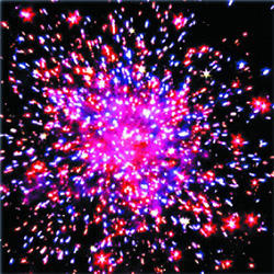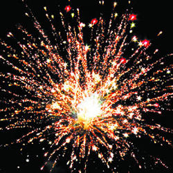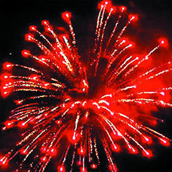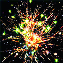 Мерцающая комета разрывается множеством серебряных ниспадающих нитей (парча) с красными звездами на концах, синие звезды. Сине-красная сфера (пион) и облако трещащих разрывов (трещащий дождь). Мерцающая комета разрывается множеством серебряных ниспадающих нитей (парча), зелено-красной сферой (пион) и треском. Зелено-красная сфера (пион) и облако треска (трещащий дождь). Мерцающая комета разрывается сине-зеленой сферой (пион) и множество серебряных ниспадающих нитей (парча). Мерцающая комета разрывается множеством золотых ниспадающих нитей (парча) с красными звездами на концах и треском. Красно-оранжевая сфера (пион) и треск. Мерцающая комета разрывается множеством серебряных ниспадающих нитей (парча) и сине- красной мерцающей сферой (пион). Мерцающая комета разрывается множеством серебряных ниспадающих нитей (парча) и зелено-синей сферой (пион) и треском.