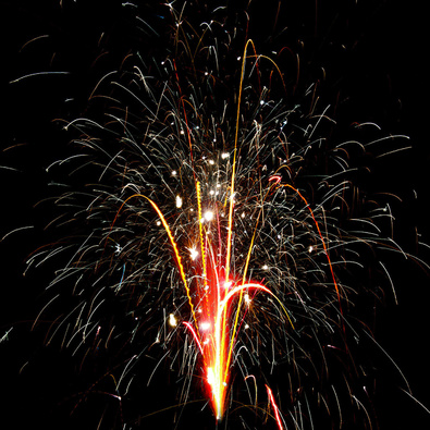 Поток разлетающихся трещащих золотых искр и оранжевых огней. Поток разлетающихся трещащих и красных огней. Поток серебряных стреляющих искр, красных и зеленых огней.