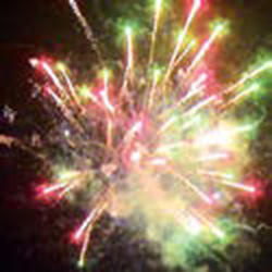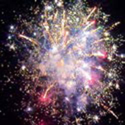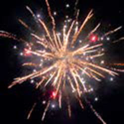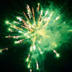 Двухуровневый. Нижний уровень – букеты из красных и зеленых ; белых мерцающих, трещащих огней, разлетающихся трещащих серебряных искр. Разноцветные кометы, мерцающие шуршащие трассы, свистящие элементы разрываются сферами из: золотых искристых форсов с красными огнями на концах; золотых форсов и синих огней; трещащих огней и серебряных форсов с краснымизелеными огнями на концах; золотых форсов с трещащими искрами и с красными огнями на концах; золотых форсов с серебряными шуршащими искрами и зелеными огнями на концах; множества трещащих хризантем, красных, зеленых и синих огней; коротких шуршаших форсов и золотых мерцающих огней (2 уровня); серебряных форсов с краснымизелеными огнями на концах и белых мерцающих огней; серебряных форсов и красных мерцающих огней; серебряных форсов и зеленых мерцающих огней; серебряных форсов и трещащих огней; золотых х форсов с трещащими серебряными искрами, красных и зеленых огней; множества трещащих сфер и крупных красныхзеленых огней.