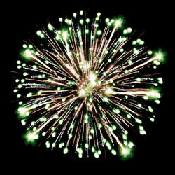 Золотые трассы. Мерцающие, трещащие искры. Сферы из золотых форсов. Разноцветные огни.