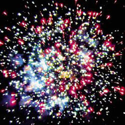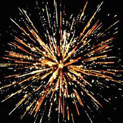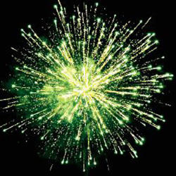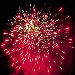 Красные звезды с пышными хвостами (кокос) и зеленое мерцание. Трещащие золотые хвосты (трещащая ива) и золотое мерцание. Серебряные звезды с пышными хвостами (кокос) и красное мерцание. Зеленые звезды с пышными хвостами (кокос) и облако треска (трещащая хризантема). Красно-белая мерцающая сфера (пион). Золотые звезды с пышными золотыми хвостами (кокос) и синие звезды. Красные мерцающие хвосты (мерцающая ива) и облако треска (трещащая хризантема).