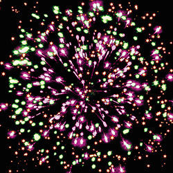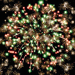 Разноцветные кометы разрываются сферами из цветных мерцающих и трещащих огней.