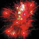 Нижний уровень – фонтан. Красное пламя и поток серебряных искр; поток трещащих искр, красных и зеленых огней. Верхний уровень. Разноцветные кометы разрываются сферами из: золотых форсов и синих огней; красных огней и множества трещащих сфер; зеленых огней с серебряными форсами и серебряных мерцающих огней; золотых форсов и множества трещащих мерцающих огней (залп).