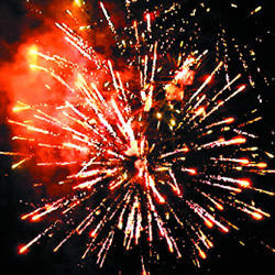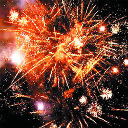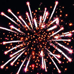 Красно-белая мерцающая сфера (пион). Зелено-золотое мерцание. Сине-белая мерцающая сфера (пион). Красно-желто-синяя сфера (пион). Выстреливает подряд: Свистящие змейки. Мерцающие кометы. Желтые звезды с пышными хвостами (кокос) и зеленое мерцание. Красочная концовка: Множество серебряных ниспадающих нитей (парча) с переходом в трещащее облако.