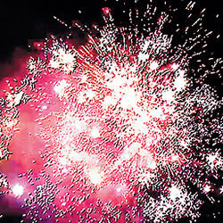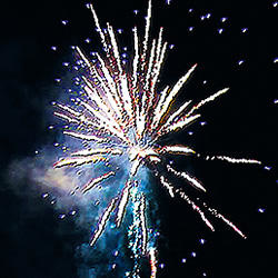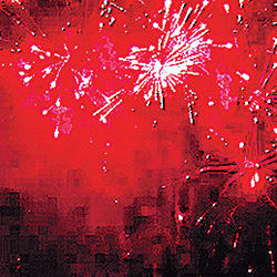 2 уровня. Нижний уровень: букеты из трещащих огней. Разноцветные кометы, свистящие элементы разрываются сферами из: красных мерцающих и белых мерцающих огней; множества трещащих сфер; белых мерцающих огней; золотых искристых форсов и красных мерцающих огней (веер W); золотых искристых форсов и синих огней (веер W); золотых искристых форсов и красных огней (веер W); множества трещащих сфер, красных и зеленых огней; разбегающихся серебряных огней и букетиков из синих огоньков в центре; золотых форсов; золотых форсов с красными мерцающими искрами; серебряных форсов и синих огней; множества трещащих сфер и красных мерцающих огней.