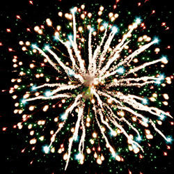 Разноцветные кометы. Золотые искристые спиралевидные трассы. Золотые форсы с серебряными искрами. Цветные мерцающие огни. Букеты из форсов.