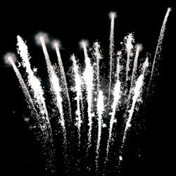 Разноцветные кометы. Золотые и серебряные трассы.Сферы из золотых форсов с серебряными искрами и мерцающими огнями. Множества трещащих сфер. Веер. Букеты из форсов.