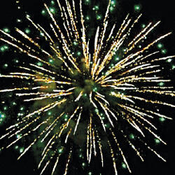 Залп хаотично разлетающихся огней. Множество золотых и серебряных ниспадающих нитей. Цветное мерцание. Разноцветные звезды с пышными хвостами. Облако треска.