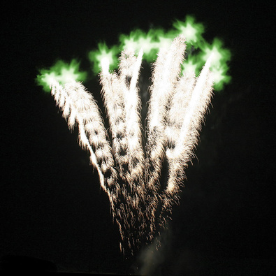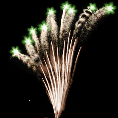 Букеты из цветных мерцающих огней. Свистящие трассы.Разноцветные кометы разрываются сферами из крупных цветных мерцающих огней, серебряных форсов и множества трещащих искр. Веер. Серебряные трассы с трещащими искрами.