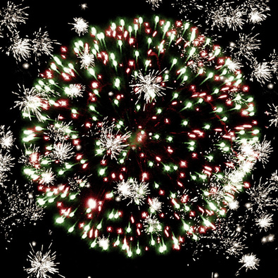 Разноцветные кометы разрываются сферами из цветных мерцающих огней, золотых искристых форсов и серебряных трещащих искр.