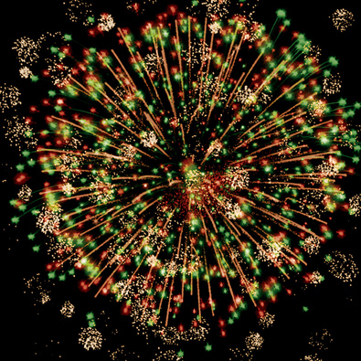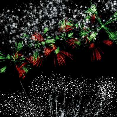 Свистящие элементы, разноцветные кометы разрываются сферами из серебряных форсов с цветными огнями на концах и множества трещащих искр. Веер. Последовательно вылетают искристые трещащие трассы с разноцветными огнями на концах. Букетики из серебряных, мерцающих, трещащих огоньков. Множества трещащих сфер.