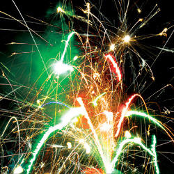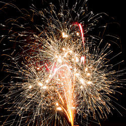 Поток серебряных мерцающих рыбок, золотых звёздочек. Поток золотых и серебряных трещащих искр и цветных огней. Светящийся смайлик.