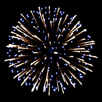 Разноцветные кометы разрываются сферами из: Серебряных форсов с красными огнями на концах и трещащих огней. Серебряных форсов, красных мерцающих и зеленых мерцающих огней. Золотых мерцающих с искрами форсов. Золотых искристых форсов и синих огней.