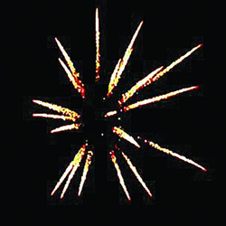 Поочередно, одна за другой, вылетает десять трещащих комет.