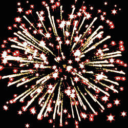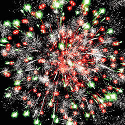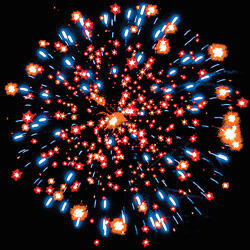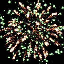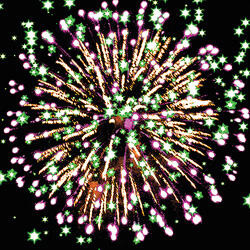 Разноцветные кометы разрываются сферами из серебряных трещащих, золотых мерцающих огней и форсов и множества трещащих сфер.