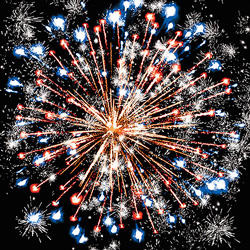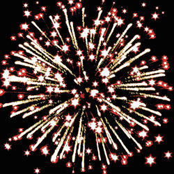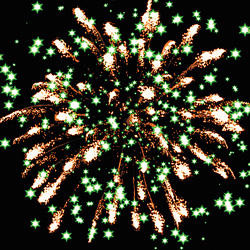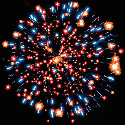 Разноцветные кометы разрываются сферами из цветных, серебряных и золотых мерцающих огней и множества трещащих сфер.