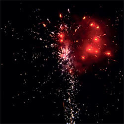 Фейерверк из трещащих серебряных шлейфов, обрамленных в зеленое и красное мерцание с серебряными волнами. А на финал трещащие хвосты и красное мерцание с трещащими пальмами усеют небо необыкновенной россыпью великолепных огней. Отличный салют для праздника!