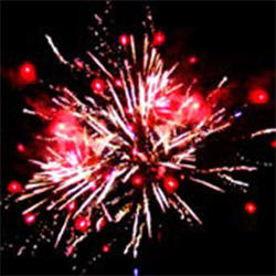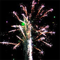 Красные и зеленые звезды с пушистыми шлейфами сопровождаются серебряным мерцанием. Золотые волны с красными жемчужинами. Золотые волны с зелеными жемчужинами. Золотые ивы с серебряными нитями и мерцанием. Золотые волны с пурпурным и изумрудным мерцанием. Красные и синие звезды с серебряными шлейфами. Золотые волны с фиолетовыми жемчужинами. Золотые трещащие шлейфы с изумрудным и серебряным мерцанием. Золотые волны с белым мерцанием. Свистящие рыбки. Разноцветные кокосы переходят в огромное трещащее облако.