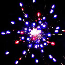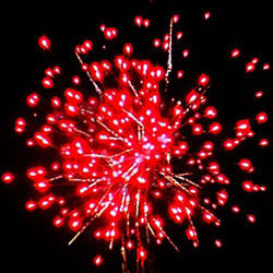 Красные, зеленые и синие георгины с белыми мерцающими искрами. Белые кометы раскрываются множеством мерцающих букетов. Трещащие короны с красными и синими жемчужинами. Красные кокосовые пальмы с белыми мерцающими искрами. Парчовые короны с белыми мерцающими искрами. Золотые и красные волны с трещащими искрами. Королевские парчовые короны с красными и голубыми георгинами. Огромные хризантемы.