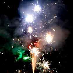 Поток серебряных искр. Трещащие вспышки и цветные огни.