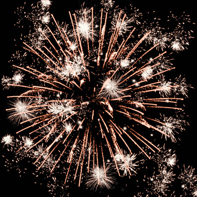 Разноцветные кометы разрываются сферами из золотых искристых форсов, цветных мерцающих и огней и множества серебряных трещащих искр.