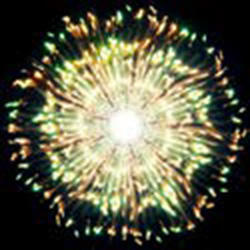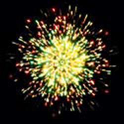 Разноцветные кометы разрываются сферами из: красных и трещащих огней; желтых и зеленых огней; серебряных форсрв с зелеными огнями на концах и красных огней; синих и трещащих огней.