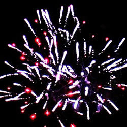 Красные кометы переходят в разноцветный жемчуг. Зеленые кометы раскрываются парчовыми коронами. Свистящие кометы разлетаются по небу рыбками. Золотые волны переходят в золотые кокосы. Красные кокосы соседствуют с золотыми хризантемами. Зеленые кокосы раскрываются золотыми волнами. Золотые кокосы переходят в парчовые короны. Красные кометы переходят в парчовые волны. Зеленые кометы переходят в разноцветные жемчужины с зеленым мерцанием. Синие кометы раскрываются парчовыми коронами с треском. Разноцветные кометы переходят в зеленые кокосы. Свистящие синие кометы переходят в мерцающие пальмы. Синие кометы разлетаются мерцающими рыбками со свистом. Красные кометы переходят в золотые хризантемы. Красные кометы переходят в золотые георгины с разноцветным жемчугом. Зеленые кометы переходят в мерцающие ивы. Красные кометы переходят в парчу с синим и красным мерцанием. Парча, опадающая с яркими вспышками. Акустический эффект. Красные кометы переходят в разноцветные (красные, синие, серебряные) вспышки. Серебряные кометы разлетаются серебряными вспышками с громким треском.