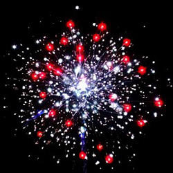 Серебряные кометы раскрываются красными пионами с серебряными трещащими пестиками. Серебряные кометы раскрываются зелеными георгинами с белыми мерцающими искрами. Серебряные кометы раскрываются красными георгинами с белыми мерцающими искрами. Зеленые кометы раскрываются зелеными мерцающими сферами с пурпурными трещащими пестиками. Серебряные кометы раскрываются желтыми георгинами с белыми мерцающими искрами. Голубые кометы раскрываются трещащими парчовыми коронами. Серебряные кометы раскрываются пурпурными георгинами с белыми мерцающими искрами. Красные мерцающие кометы раскрываются красными георгинами и хризантемами. Красные кометы раскрываются серебряными мерцающими сферами с красными георгинами. Зеленые кометы переходят в зеленые мерцающие сферы. Зеленые кометы переходят в золотых мерцающих драконов с красными георгинами. Красные кометы переходят в желтые георгины с зелеными мерцающими искрами. Зеленые кометы раскрываются золотыми хризантемами с зелеными трещащими пестиками. Красные кометы раскрываются парчовыми коронами с белыми мерцающими жемчужинами. Красные кометы раскрываются огромными парчовыми сферами. Серебряные кометы переходят в трещащие сферы с зелеными мерцающими жемчужинами. В финале множество трещащих хризантем.