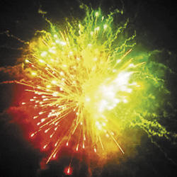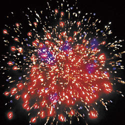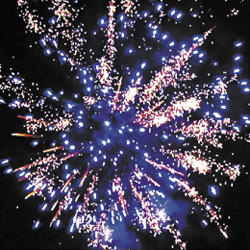 Цветные мерцающие сферы. Множество серебряных ниспадающих нитей. Серебряные звезды с пышными хвостами. Золотое мерцание. Треск. Звезды. Шуршащие золотые хвосты.