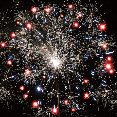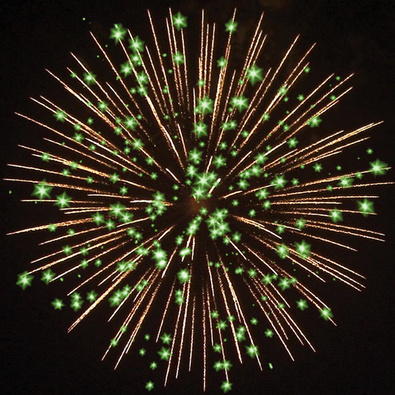 Разноцветные кометы разрываются сферами из цветных мерцающих и трещащих огней.