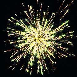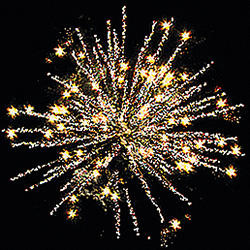 Разноцветные кометы разрываются сферами из: серебряных форсов с красными огнями на концах и зеленых мерцающих огней; серебряных форсов с зелеными огнями на концах и белых мерцающих огней; серебряных форсов с серебряными огнями на концах и золотых трещащих огней.