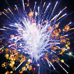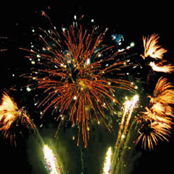 Трещащие золотые хвосты. Золотое и цветное мерцание. Разноцветные звезды. Множество золотых и серебряных ниспадающих нитей. Веер. Золотые и цветные букеты. Свист. Серебряная вертушка. Кометы. Сфера золотых хвостов.