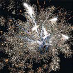 Разноцветные кометы разрываются сферами из: крупных красных и зеленых мерцающих огней; синих и белых мерцающих огней; серебряных форсов; трещащих огней со свистящими трассами (залп).