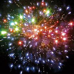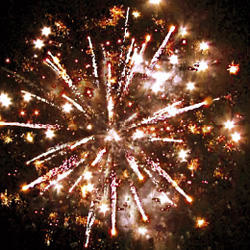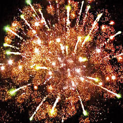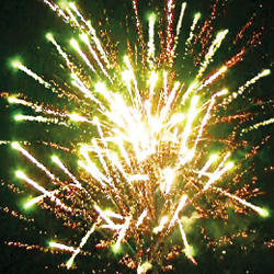 Разноцветные звезды с пышными хвостами. Облако треска. Цветные сферы и золотое мерцание. Золотая трещащая хризантема.