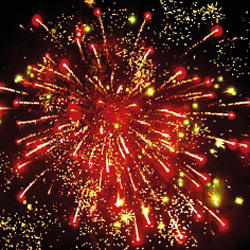 Сфера серебряных хвостов с переходом в цветные звезды и мерцание .Разноцветные ппышные хвосты и облако треска.
