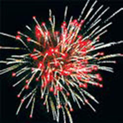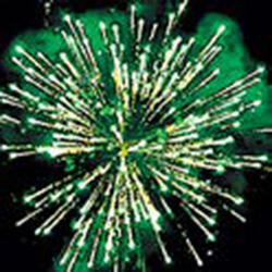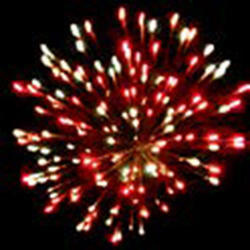 Разноцветные кометы разрываются сферами из цветных и мерцающих огней с форсами, множества трещащих сфер.