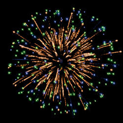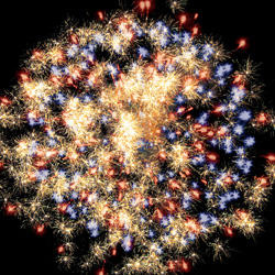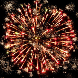 Разноцветные кометы. Свистящие элементы. Сферы из серебряных форсов с цветными огнями на концах.Золотые искры. Трещащие форсы и мерцающие огни.