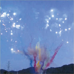 2 уровня, веер. Разноцветные дымы. Трещащие разрывы.